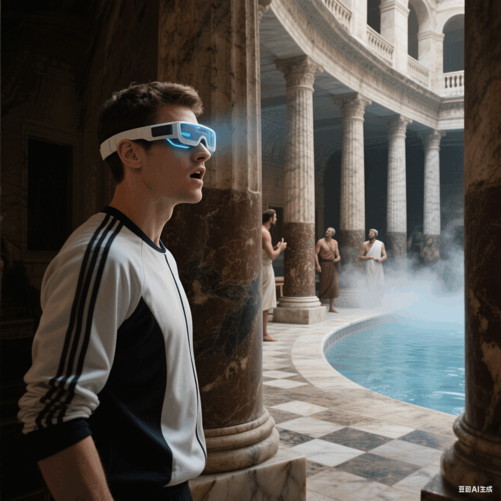 • 古罗马浴场:破碎的大理石柱自动拼接完整,虚拟温泉水汽氤氲,你可以看到古罗马人裹着托加袍在回廊下讨论哲学。