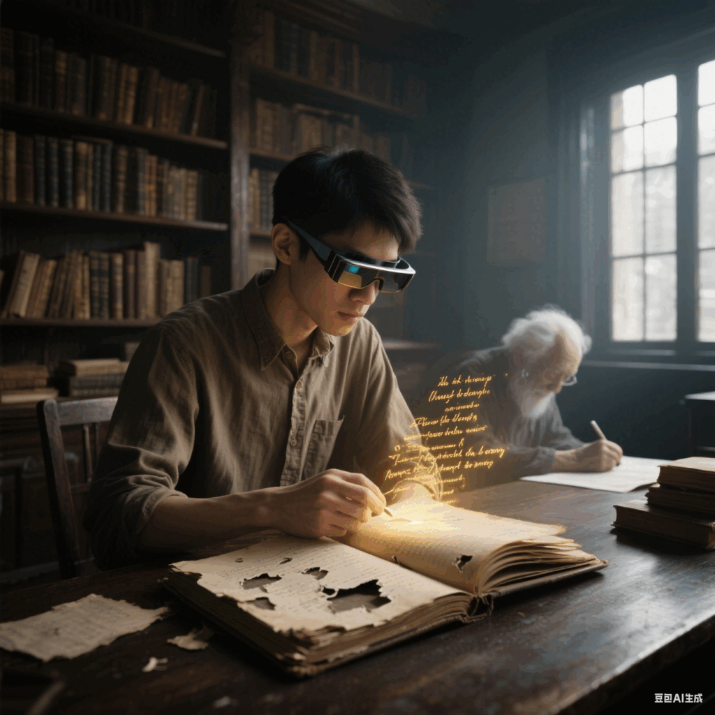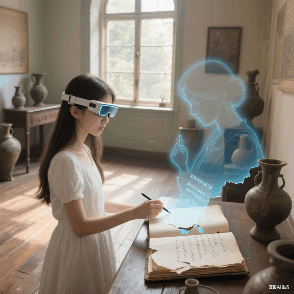 • 破损的日记本:AR眼镜扫描残页,缺失的文字在空中补全,同时浮现作者伏案书写的虚影,耳边响起带着方言的诵读声。