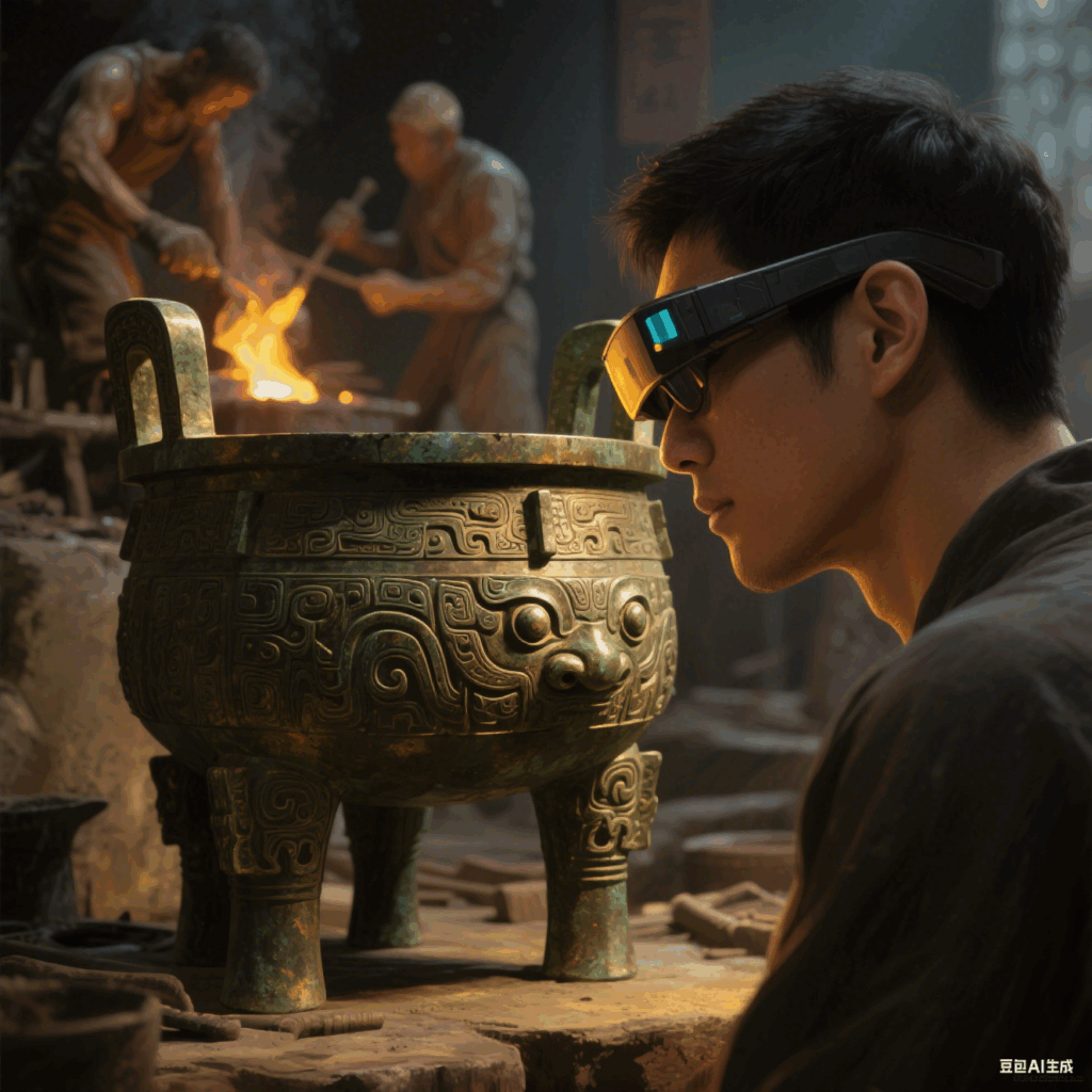 • 沉睡的青铜器:AR眼镜前,西周青铜鼎上的饕餮纹样突然睁开双眼,鼎身浮现铸造工匠挥汗如雨的劳作场景,耳畔响起”叮当”的铸铜声。
